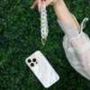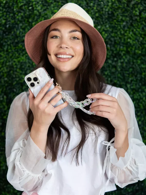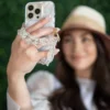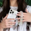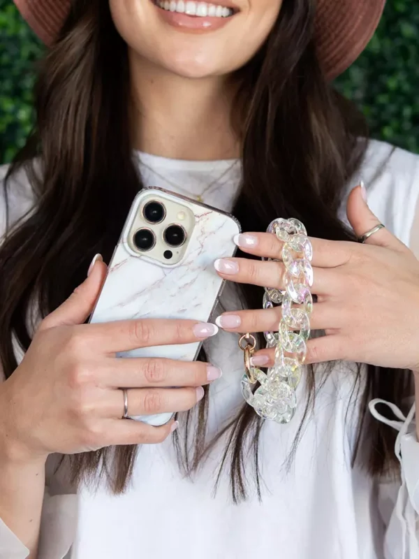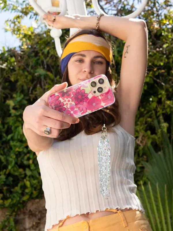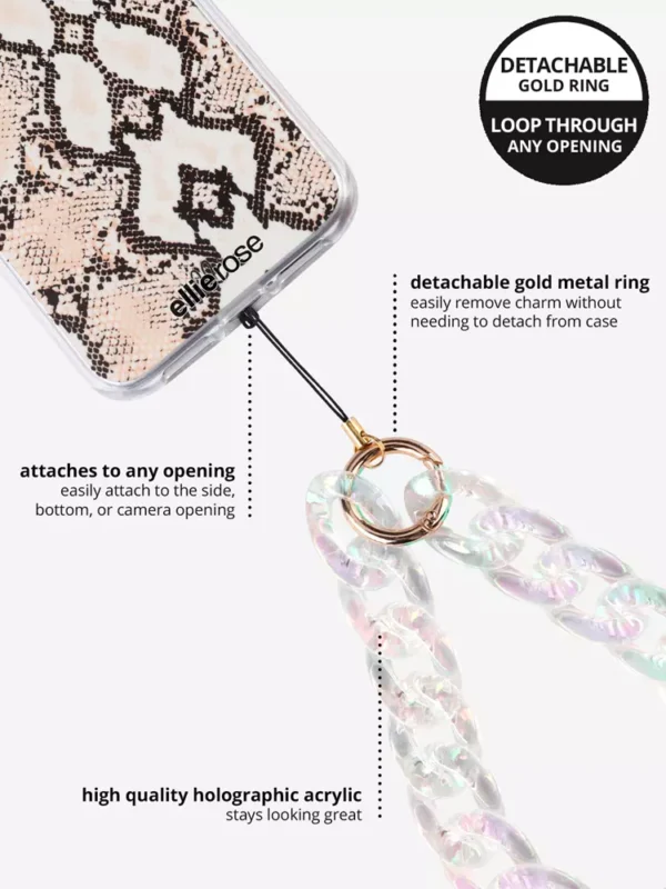 Stay on-trend with our stylish phone charm! Loops through any opening on any phone case to provide an instant style upgrade. This cute charm can slide over your wrist for easy access to your phone, but keep in mind this phone charm is decorative and not designed to withstand extreme weight or force.